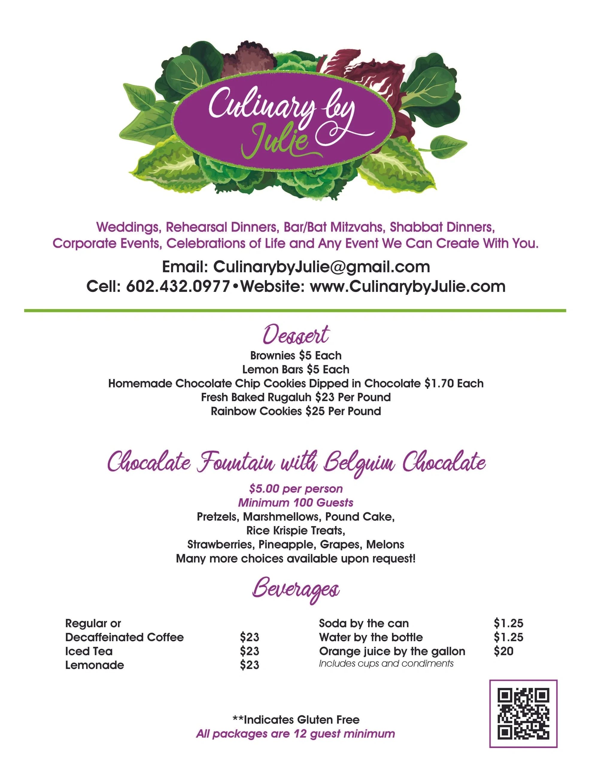 Are you looking for a catering team to provide their culinary creations at your next event? Large or small we do it all! Get in touch to start planning the perfect meal for Weddings, Rehearsal Dinners, Bar/Bat Mitzvahs, Shabbat Dinners, Corporate Events, Celebrations of Life and Any Event We Can Create With You.
